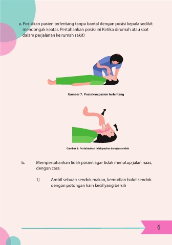 a. Posisikan pasien terlentang tanpa bantal dengan posisi kepala sedikit