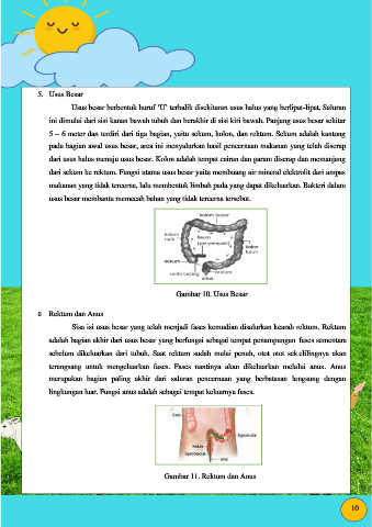 5 – 6 meter dan terdiri dari tiga bagian, yaitu sekum, kolon, dan rektum. Sekum adalah kantong