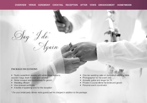 * For your bridal party dinner, extra guests will be charged in addition to the package.