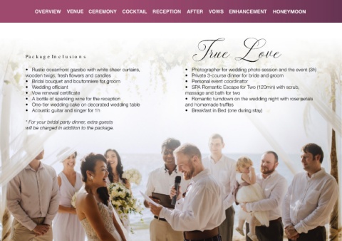 • A bottle of sparkling wine for the reception • Romantic turndown on the wedding night with rose petals
