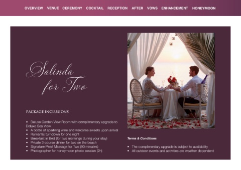 • Photographer for honeymoon photo session (2h) • All outdoor events and activities are weather dependent