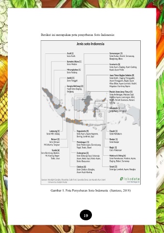 Berikut ini merupakan peta penyebaran Soto Indonesia: Gambar 1. Peta Penyebaran Soto Indonesia (Santoso, 2018) 19