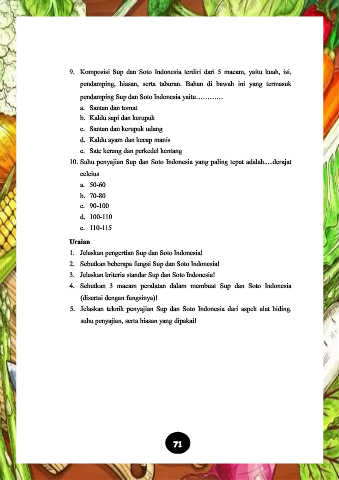 10. Suhu penyajian Sup dan Soto Indonesia yang paling tepat adalah.....derajat