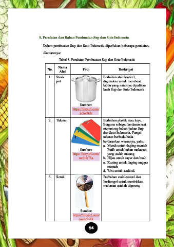 Tabel 8. Peralatan Pembuatan Sup dan Soto Indonesia