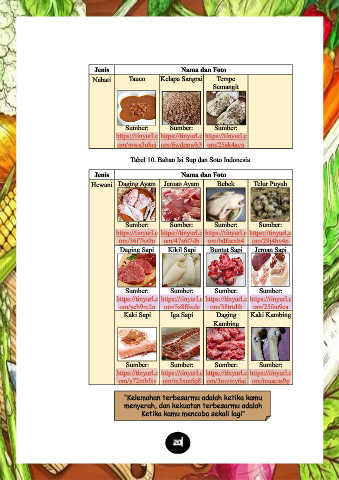 Tabel 10. Bahan Isi Sup dan Soto Indonesia