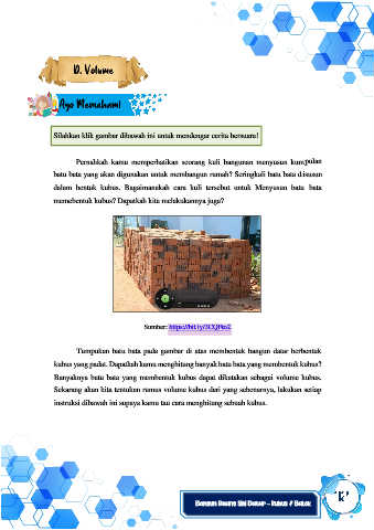 Banyaknya batu bata yang membentuk kubus dapat dikatakan sebagai volume kubus.
