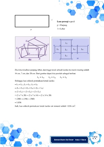 Jadi, luas seluruh permukaan kotak kardus air mineral adalah 1.036 cm .