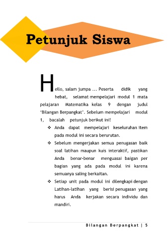 ‘Bilangan Berpangkat’. Sebelum mempelajari modul