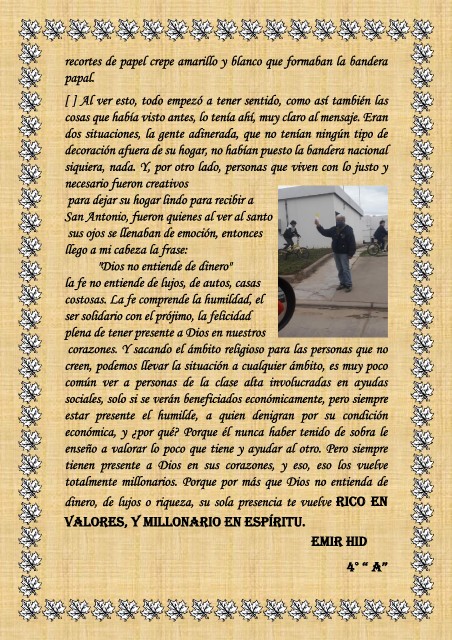 enseño a valorar lo poco que tiene y ayudar al otro. Pero siempre