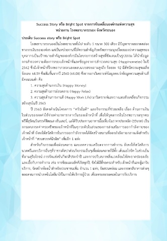 Success Story หรือ Bright Spot จากการขับเคลื่อนองค์กรแห่งความสุข