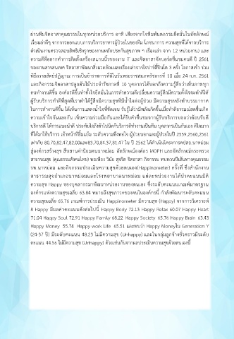 8 Happy มีผลค่าคะแนนดังต่อไปนี้ Happy Body 72.13 Happy Relax 60.07 Happy Heart