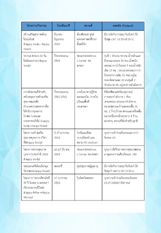 โครงการ/กิจกรรม วัน/เดือน/ปี สถานท ี่ ผลผลิต (Output)