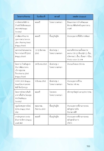 โครงการ/กิจกรรม วัน/เดือน/ปี สถานท ี่ ผลผลิต (Output)