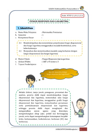 d. Materi Pokok : Fungsi Eksponen dan Logaritma