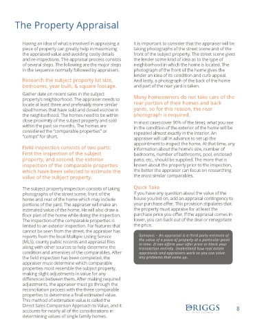 reports from the local Multiple Listing Service Synopsis – An appraisal is a third party estimate of