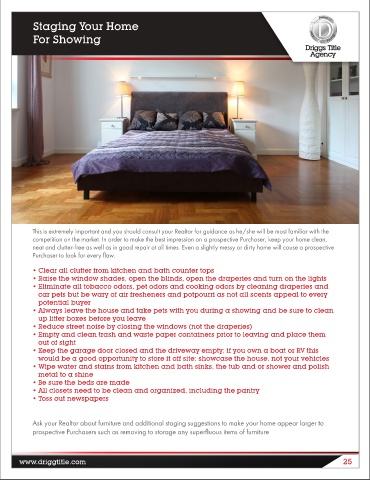 neat and clutter-free as well as in good repair at all times. Even a slightly messy or dirty home will cause a prospective