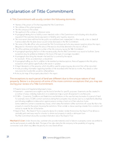 • A paragraph telling you that in addition to the standard printed exceptions, there will appear in the title policy
