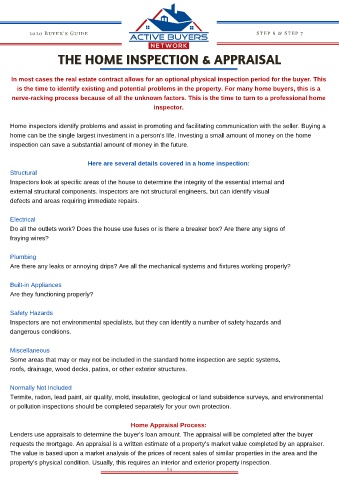 is the time to identif e isting and potential problems in the propert . For man home bu ers, this is a
