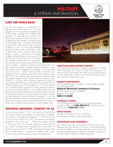 a 1.85 acre site at Luke AFB. The new complex features sufficient National Memorial Cemetery of Arizona