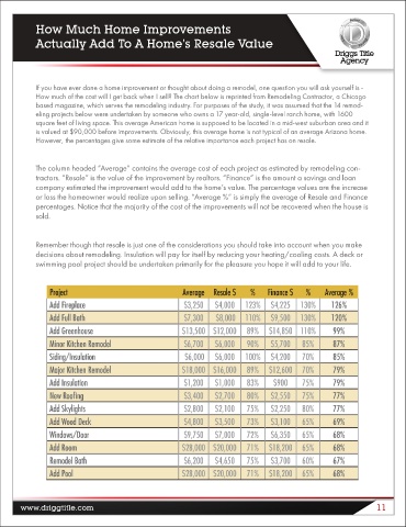 percentages. Notice that the majority of the cost of the improvements will not be recovered when the house is
