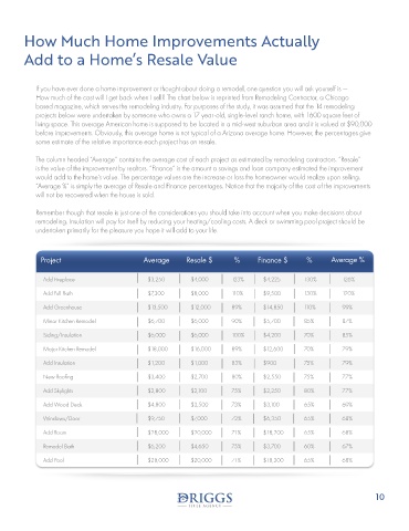 would add to the home’s value. The percentage values are the increase or loss the homeowner would realize upon selling.