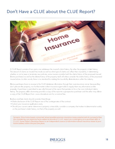 •Make disclosure of the CLUE Report one of the contingencies of the contract.