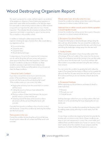 of the existence or absence of wood destroying organisms or Correct this condition by making certain that no part of the patio