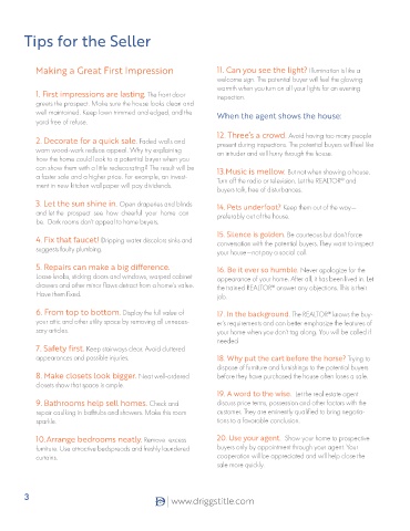well maintained. Keep lawn trimmed and edged, and the   When the agent shows the house:
