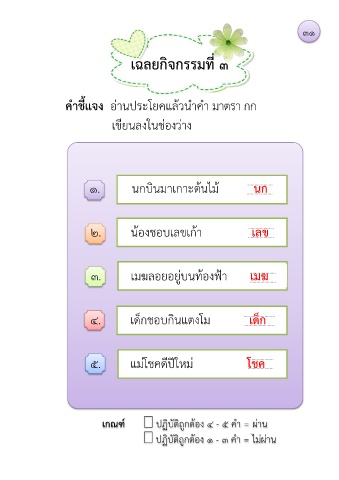 เฉลยกิจกรรมที่ ๓