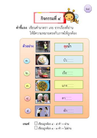 เกณฑ์ เขียนถูกต้อง 4 - ๕ ค า = ผ่าน