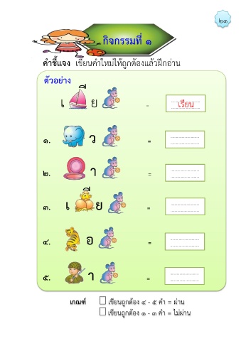 เกณฑ์ เขียนถูกต้อง 4 - ๕ ค า = ผ่าน