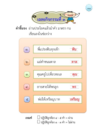 ค าชี้แจง อ่านประโยคแล้วน าค า มาตรา กน