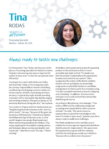 For Diamantina “Tina” Rodas, the best part of her At Medeco, she is particularly proud of organizing