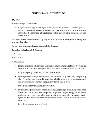 1. Menjelaskan konsep perkembangan teknologi produksi, komunikasi dan transportasi