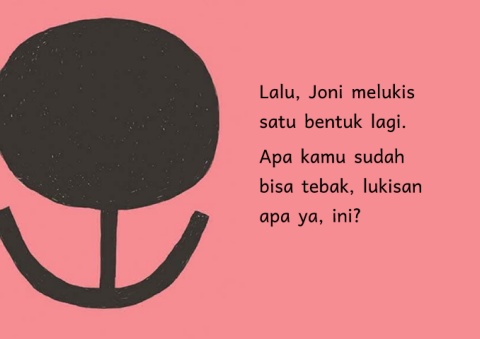 Lalu, Joni melukis satu bentuk lagi. Apa kamu sudah bisa tebak, lukisan apa ya, ini?