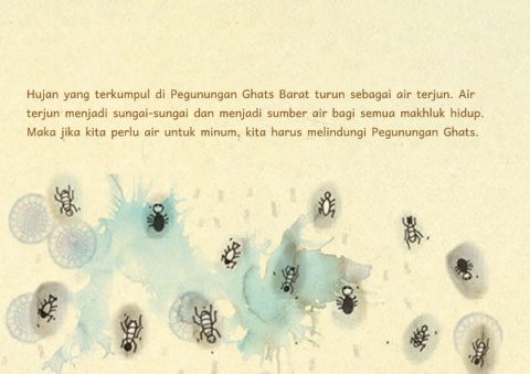 Hujan yang terkumpul di Pegunungan Ghats Barat turun sebagai air terjun. Air terjun menjadi sungai-sungai dan menjadi sumber air bagi semua makhluk hidup. Maka jika kita perlu air untuk minum, kita harus melindungi Pegunungan Ghats.