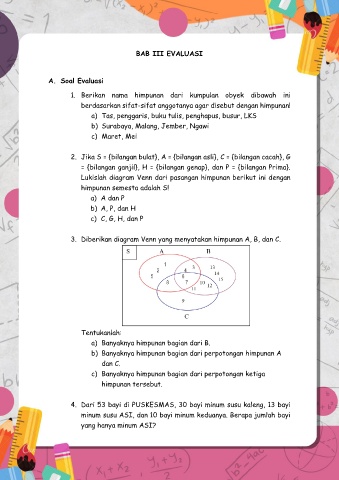3. Diberikan diagram Venn yang menyatakan himpunan A, B, dan C.