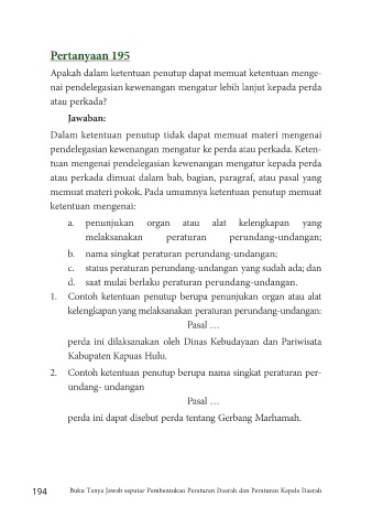 194 Buku Tanya Jawab seputar Pembentukan Peraturan Daerah dan Peraturan Kepala Daerah