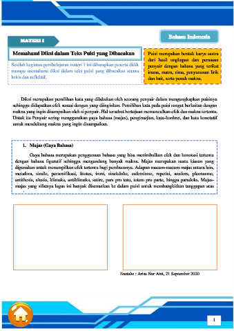 Setelah kegiatan pembelajaran materi 1 ini diharapkan peserta didik penyair dengan bahasa yang terikat