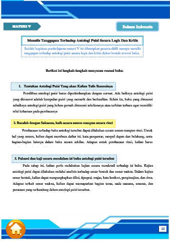 tanggapan terhadap antologi puisi secara logis dan kritis dalam bentuk resensi buku.