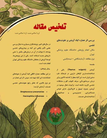 در سالهای اخیر ،پژوهشگران بسیاری به دنبال بررسی بررسی اثر عصاره گیاه آویشن بر عفونتهای