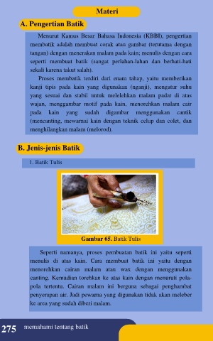 tangan) dengan menerakan malam pada kain; menulis dengan cara