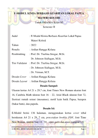 Judul : E-Modul Kimia Berbasis Kearifan Lokal Papua