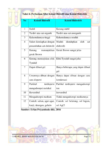 Tabel 4. Perbedaan Sifat Koloid Hidrofil dan Koloid Hidrofob