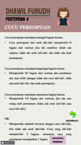 • Cucu perempuan dari anak laki-laki memperoleh ½