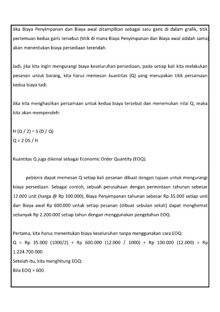 pesanan untuk barang, kita harus memesan kuantitas (Q) yang merupakan titik persamaan