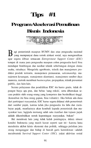 agar segera dibuat semacam Entrepreneur Support Center (ESC)