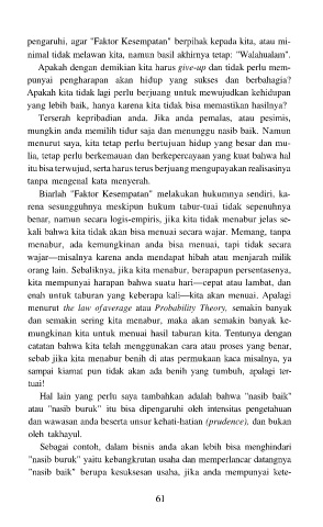 mungkinan kita untuk menuai hasil taburan kita. Tentunya dengan