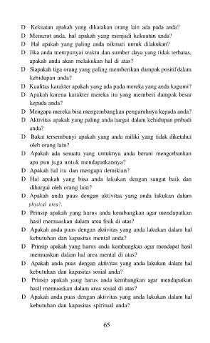D Aktivitas apakah yang paling anda hargai dalam kehidupan pribadi