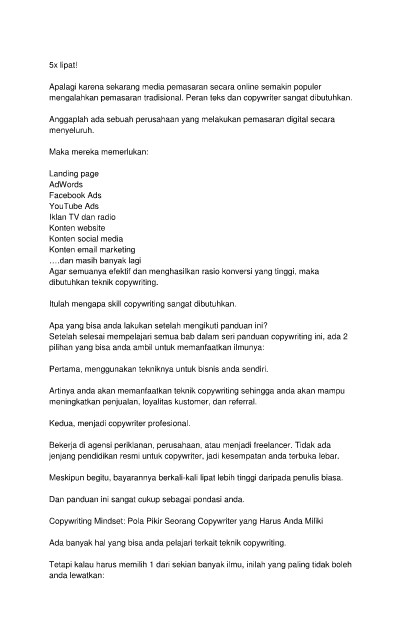 mengalahkan pemasaran tradisional. Peran teks dan copywriter sangat dibutuhkan.